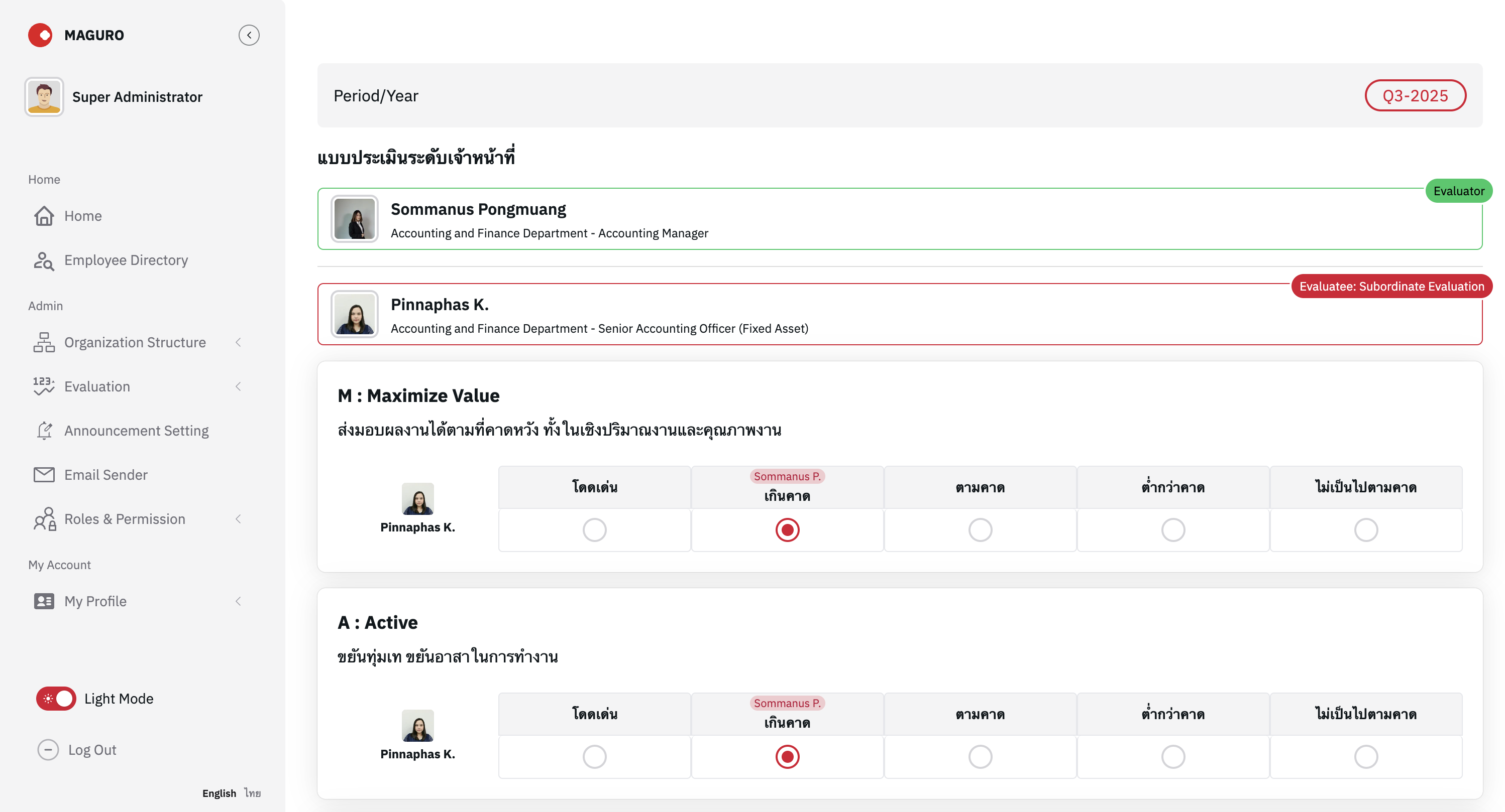 A dynamic evaluation platform allowing customizable form configurations per department and position. Features 360-degree feedback with subordinate/supervisor evaluations based on dynamic criteria.